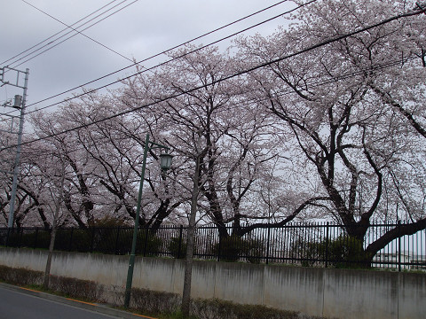 桜の木の勢いがある並木ですが塀が高いのが残念ですね、グランド内での公開日もあります